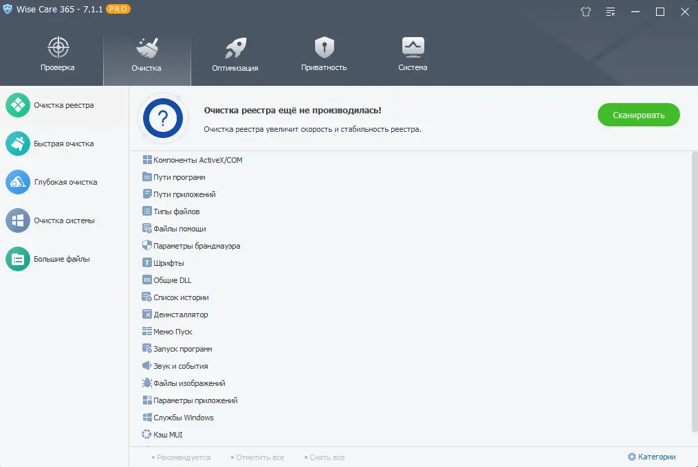 - Очистка, дефрагментация и оптимизация реестра Windows.