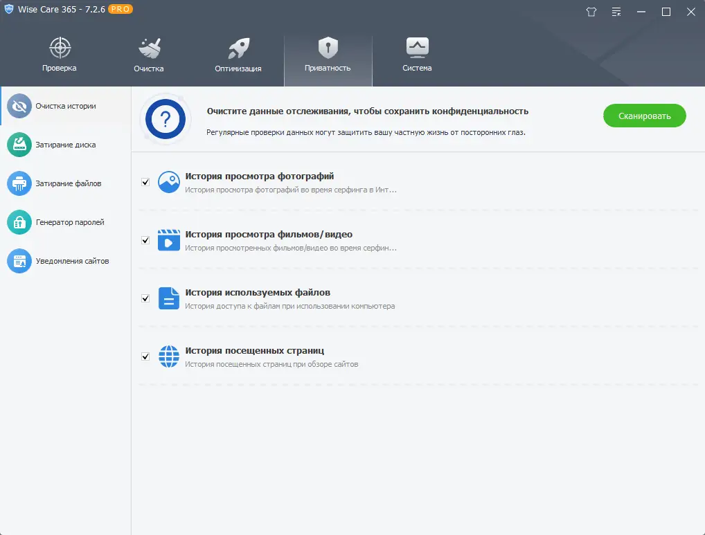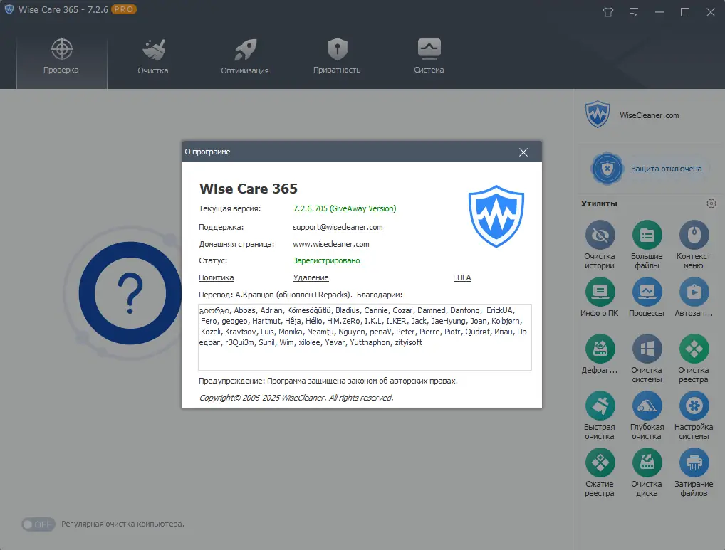 Wise Care 365 – это мощный программный пакет, предназначенный для настройки, очистки и оптимизации вашего компьютера под управлением операционных систем Windows 7, 8/8.1, 10 и 11. Он способен безопасно произвести очистку системного реестра, освободить место на жестком диске, дефрагментировать как реестр, так и жесткий диск, а также восстановить удалённые файлы. Помимо этого, программа позволяет блокировать запуск нежелательных приложений, защищать важные файлы путём шифрования и скрытия, оптимизировать оперативную память для игр и профессиональных задач, а также управлять автозагрузкой.