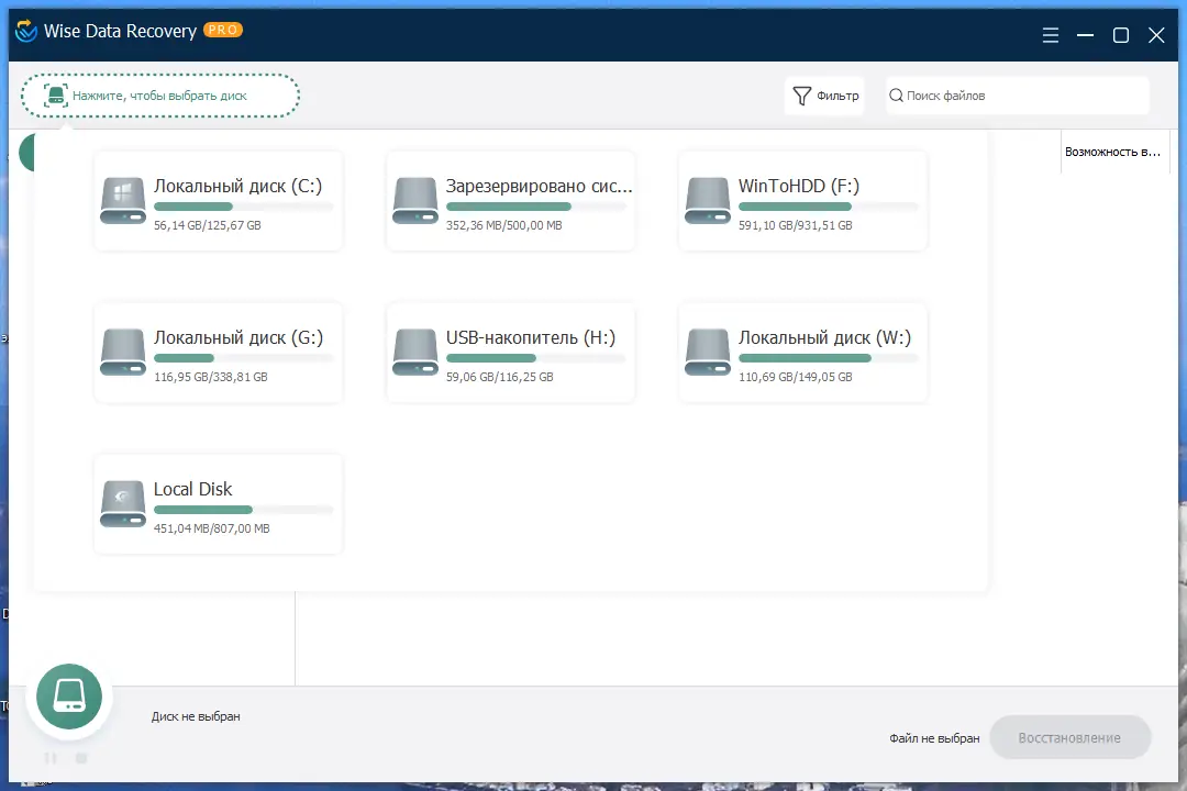 Wise Data Recovery — это мощная утилита, предназначенная для быстрого и безопасного восстановления удалённых файлов. Она позволяет вернуть потерянные изображения, документы, аудио, видео, архивы и даже электронную почту как с локальных, так и с подключённых съемных дисков. Программа отличается универсальностью и высокой эффективностью в восстановлении данных, поддерживает работу с различными файловыми системами и предоставляет удобный интерфейс для поиска и предварительного просмотра файлов.