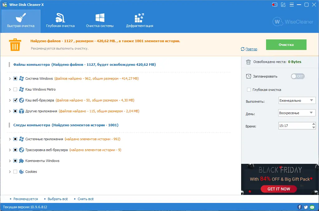 - Множество настроек для индивидуальной настройки очистки накопителя.