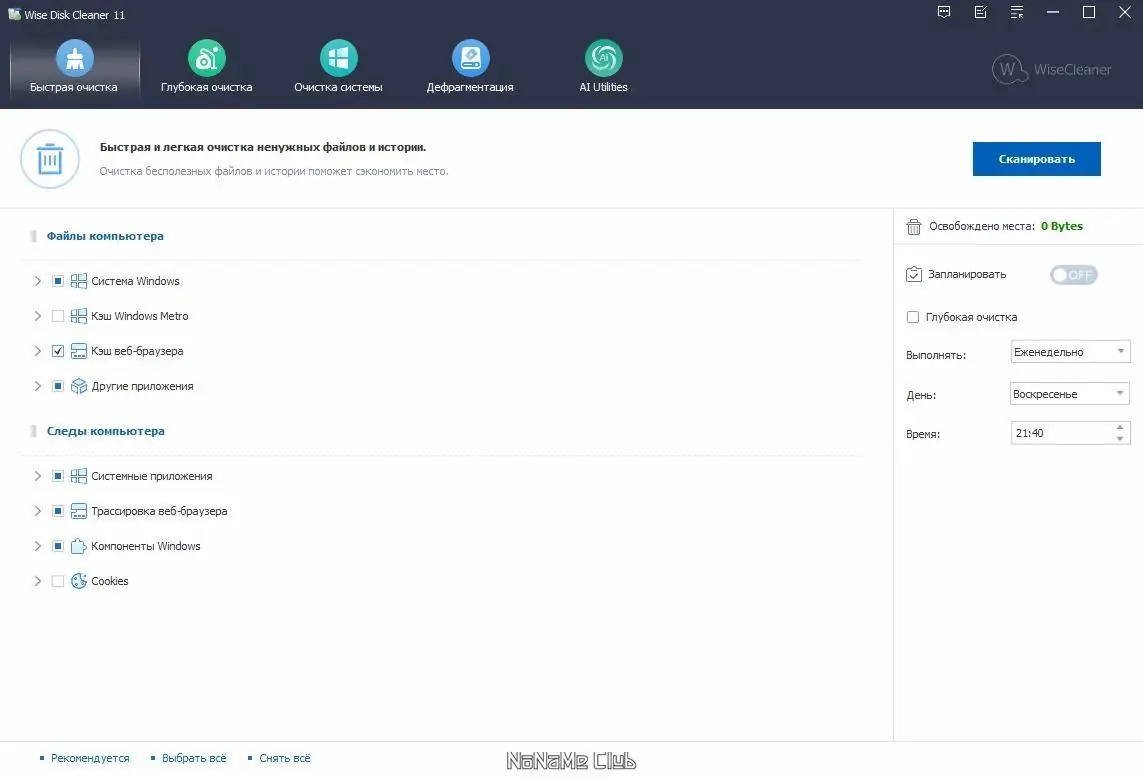 Это простая в использовании и надежная программа для очистки жесткого диска, которая определяет более 50 типов мусорных файлов. Благодаря встроенному помощнику пользователь сможет максимально эффективно провести очистку, просмотрев подробную информацию о каждом найденном файле и самостоятельно решая, что удалить. Также предусмотрена возможность самостоятельно добавлять новые форматы файлов для более точной очистки.