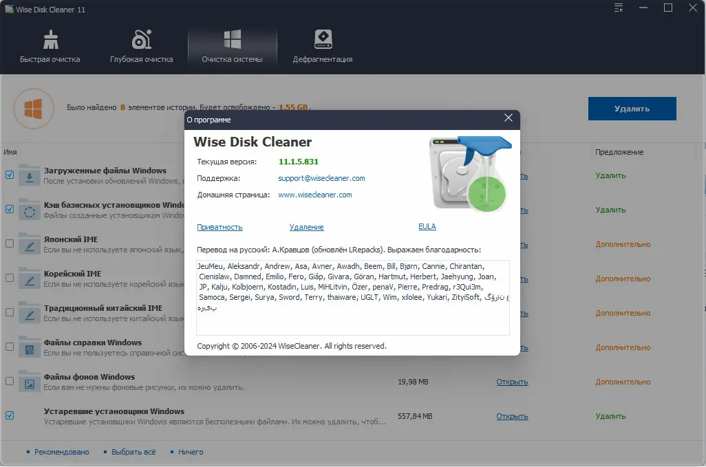 Программа включает помощника для более удобного взаимодействия, а возможность удаления файлов в корзину делает процесс безопаснее. Многоязычный интерфейс, поддержка Windows 7, 8/8.1, 10, 11 — всё это делает Wise Disk Cleaner универсальным решением для пользователей с разными требованиями и языковыми предпочтениями. Программа доступна бесплатно, а для скачивания предлагается различные варианты, включая торрент и официальный сайт, где можно скачать на русском языке или на русском бесплатно.