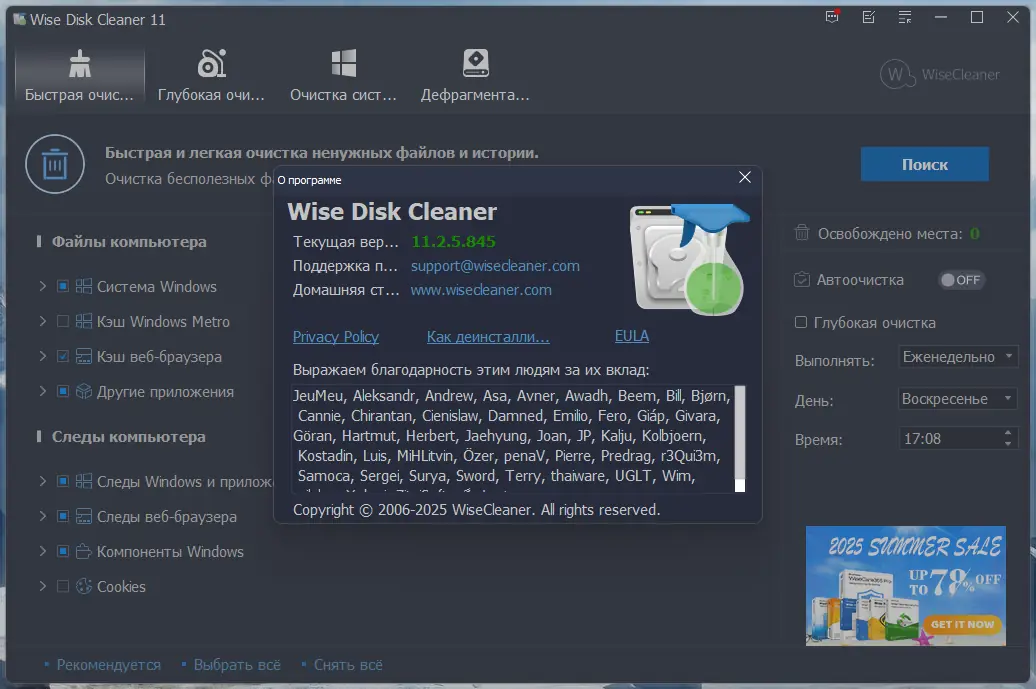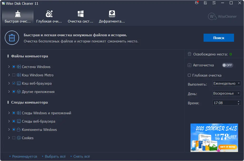 Эффективная утилита для быстрой очистки жесткого диска от ненужных файлов.