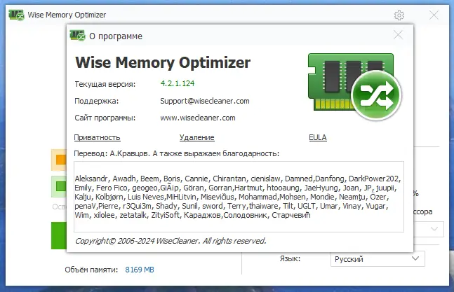 Wise Memory Optimizer — это простая и эффективная программа для освобождения оперативной памяти, что способствует увеличению скорости работы ПК и улучшению его общей производительности. Утилита позволяет автоматически или вручную высвободить занятую память, занятую бесполезными приложениями, и настроить её использование под свои нужды. Как новичкам, так и опытным пользователям программа удобна благодаря понятному интерфейсу и множеству настроек. Важно отметить, что во время установки предложено посетить сайт автора репака, рекомендуется снять галочку при необходимости.