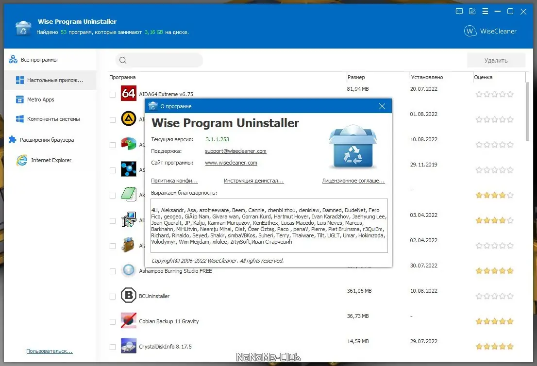 Wise Program Uninstaller — это мощная утилита для удаления установленных программ в системе. Она позволяет выполнять деинсталляцию как стандартными средствами Windows, так и с помощью собственных расширенных инструментов для более эффективного очищения. В программе реализован механизм удаления остатков, записей в реестре и файлов, что значительно повышает качество очистки системы после удаления программ. Также доступна функция быстрого поиска информации о приложениях в интернете, что удобно при необходимости узнать подробности о конкретном софте.