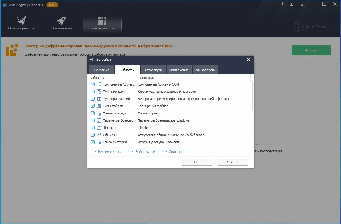 - Автоматическая очистка и дефрагментация реестра с возможностью настройки по расписанию.