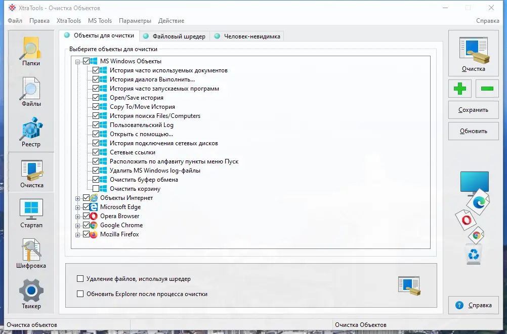- Обеспечение быстрой очистки папок, файлов и реестра для ускорения системы;