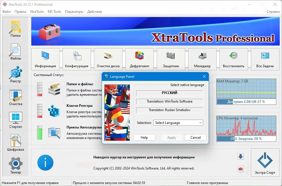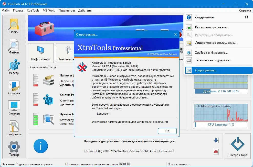 XtraTools — это универсальный инструмент для оптимизации системы MS Windows, предназначенный для повышения скорости и стабильности работы вашего компьютера.