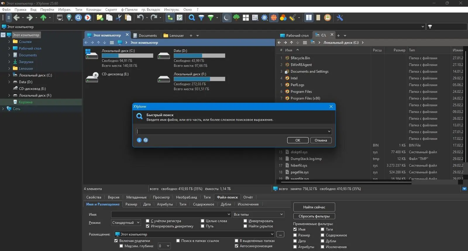 XYplorer – удобный многовкладочный файловый менеджер, предназначенный для пользователей, ищущих замену стандартному проводнику Windows. Внешне он напоминает классический проводник, но обладает расширенной функциональностью и множеством настроек для комфортной работы с файлами и папками. Особенностью является возможность открытия каждого окна в новой вкладке внутри основного интерфейса, что позволяет быстро переключаться между множеством папок и повышает эффективность работы. Гибкие настройки позволяют полностью адаптировать программу под личные предпочтения, а интуитивно понятный интерфейс делает процесс навигации легким и удобным для пользователей любого уровня.