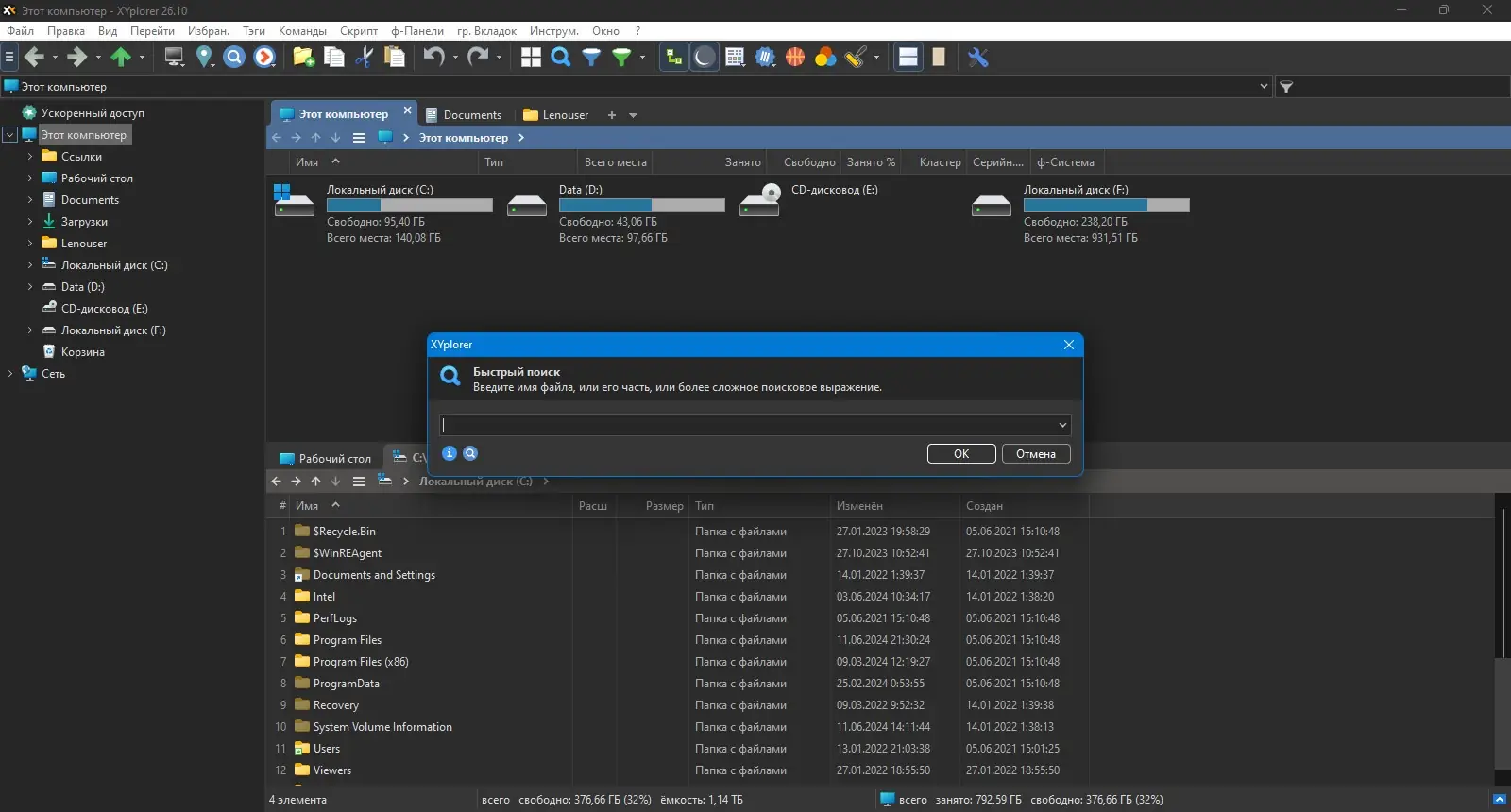 XYplorer – удобный многовкладочный файловый менеджер, ориентированный на пользователей, которые хотят найти достойную замену стандартному проводнику Windows. Внешне напоминает стандартный проводник, но обладает большей функциональностью и множеством дополнительных возможностей для удобной работы с файлами. Особенностью XYplorer является возможность открытия каждого окна в новой вкладке основного окна программы — откройте столько вкладок, сколько Вам нужно, и быстро переключайтесь между ними. Программа имеет гибкие настройки и может быть полностью адаптирована под личные предпочтения пользователя, обеспечивая максимально комфортную навигацию по дискам, папкам и файлам. Отличается простым, интуитивно понятным интерфейсом, который легко настроить под себя для достижения оптимальной эффективности работы.