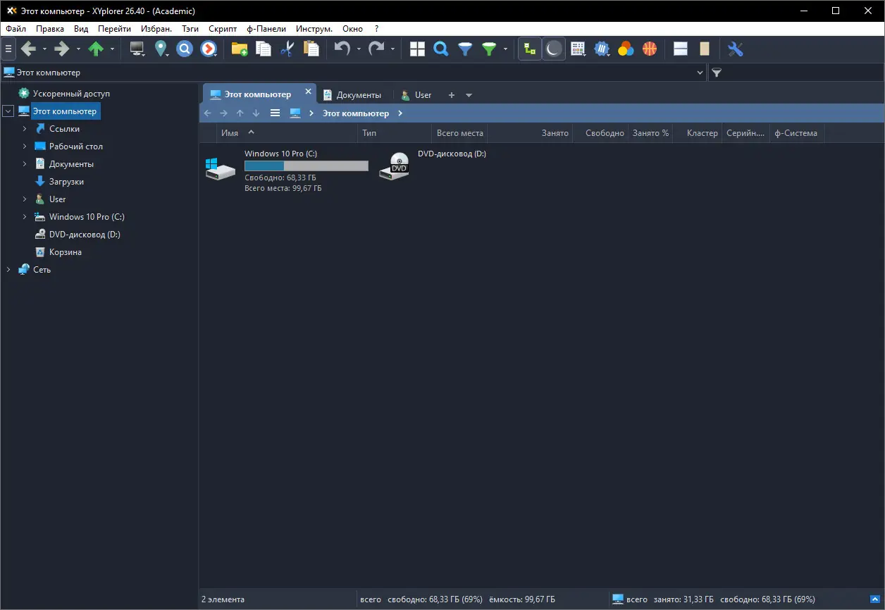 XYplorer – удобный многовкладочный файловый менеджер, специально разработанный для пользователей, ищущих достойную альтернативу стандартному проводнику Windows. Внешне он напоминает стандартный проводник, однако обладает расширенными возможностями и богатым функционалом, который значительно упрощает работу с файлами и папками на компьютере. Отличительной особенностью является возможность открытия каждого окна в новой вкладке внутри основного интерфейса, что позволяет быстро переключаться между различными разделами и эффективно управлять большими объемами данных. Благодаря гибким настройкам пользователь может полностью адаптировать программу под свои предпочтения, создавая максимально комфортную среду для навигации по дискам, папкам и файлам, а также легко настраивать интерфейс под свои нужды.
