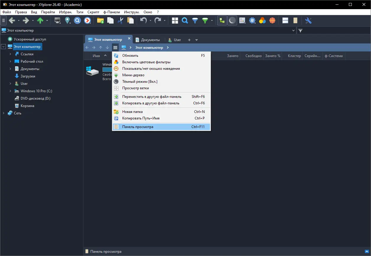 - Более обширный функционал по сравнению со стандартным проводником Windows.