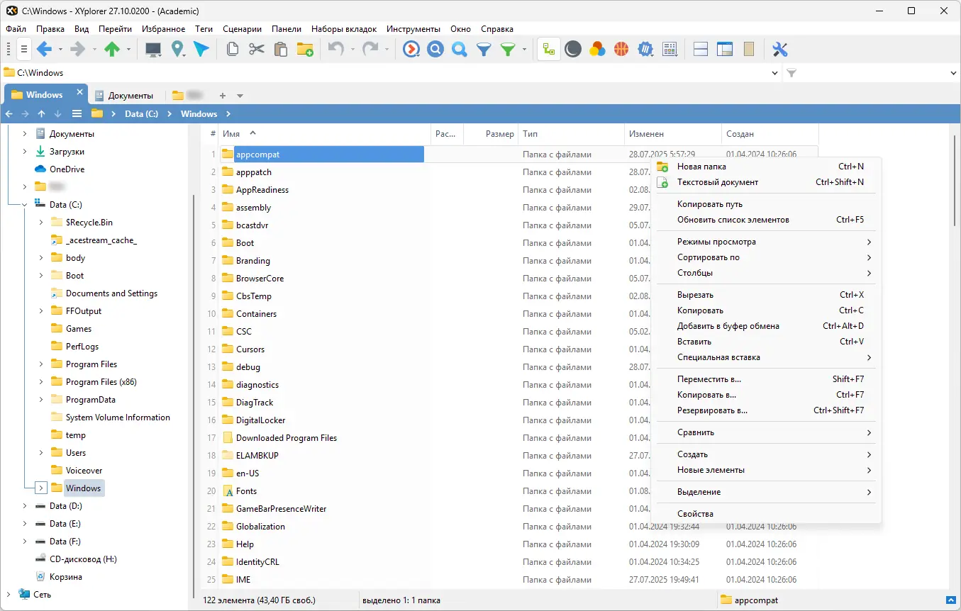 XYplorer напоминает стандартный проводник Windows по внешнему виду, но превосходит его по функциональности. Основной особенностью является возможность открытия каждого окна в новой вкладке, что позволяет быстро переключаться между различными папками. Благодаря настройкам, программное обеспечение полностью адаптируется под личные предпочтения пользователя, повышая эффективность работы и удобство навигации. Программа поддерживает работу как на 32- и 64-битных системах Windows 7, 8/8.1, 10, 11, так и в безрегистрационной версии, доступной бесплатно и полностью русифицированной.