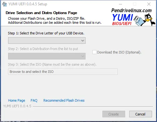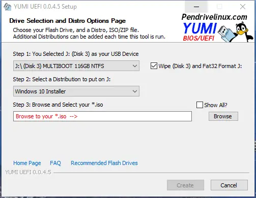 - Подключите USB-носитель и нажмите кнопку «Create», чтобы начать процесс.