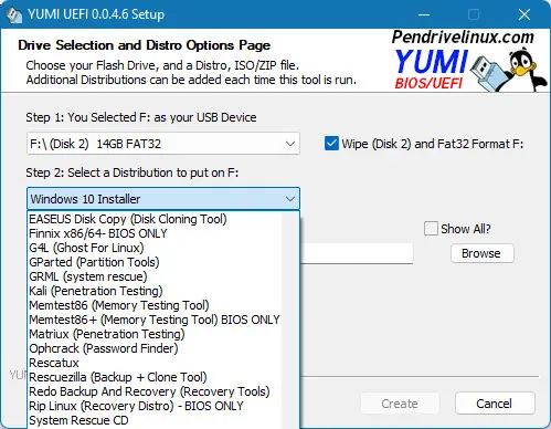 Программа предназначена для быстрого и удобного создания мультизагрузочных USB-накопителей с различными образами. Для начала нужно выбрать ISO-образ или загрузить его с официального сайта, после чего просто указать расположение файла и нажать «Create». В результате создаётся загрузчик, совместимый с UEFI BIOS, что особенно важно для современных систем. Возможность выбора из множества категорий образов делает этот инструмент универсальным для профессионалов и домашних пользователей.
