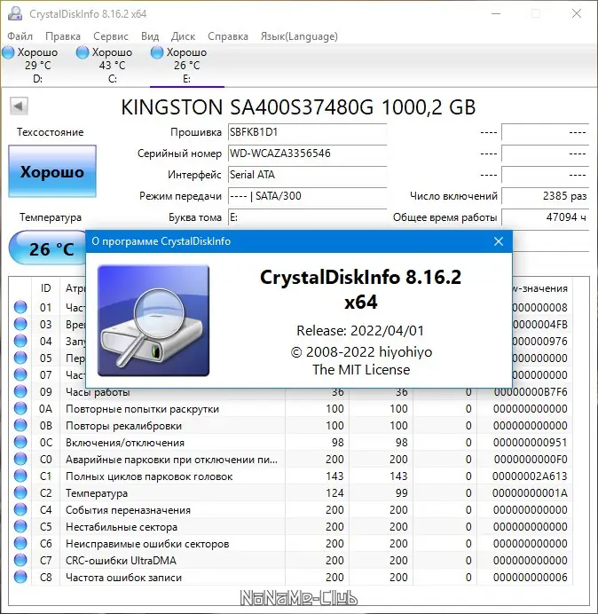 Эта программа предназначена для мониторинга состояния жестких дисков и SSD дисков, поддерживающих технологию S.M.A.R.T. Она позволяет пользователям получить детальную информацию о каждом накопителе, включая прошивку, серийный номер, интерфейс, время работы, а также параметры атрибутов системы самодиагностики. Программа динамически отслеживает изменения параметров для всех подключённых дисков и отображает их на графике, что облегчает своевременное выявление потенциальных проблем. Поддержка локализаций, сменных тем и работы с внешними накопителями через USB и IEEE 1394 делает её универсальным инструментом для большинства пользователей.
