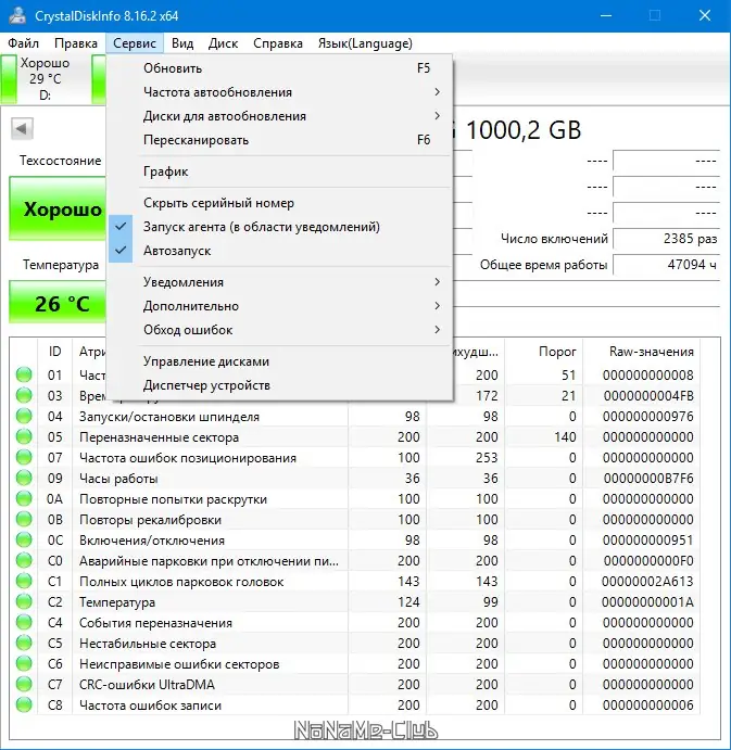 - Мониторинг состояния здоровья и температуры дисков