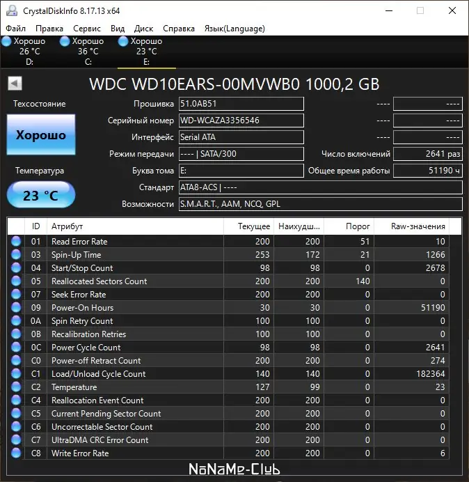 CrystalDiskInfo — это бесплатная программа для мониторинга состояния жестких дисков и SSD-накопителей под управлением Windows. Она поддерживает технологию S.M.A.R.T., позволяя отслеживать параметры здоровья устройств, температуру и другие важные показатели. Современный инструмент предоставляет подробную информацию о каждом диске в системе, включая прошивку, серийный номер, интерфейс и общий режим работы. Обеспечивает динамическое отображение изменений параметров в реальном времени и выводит их наглядно на графиках. Также программа поддерживает внешние USB и IEEE 1394 устройства, а возможность управления AAM и APM позволяет дополнительно оптимизировать работу накопителей.