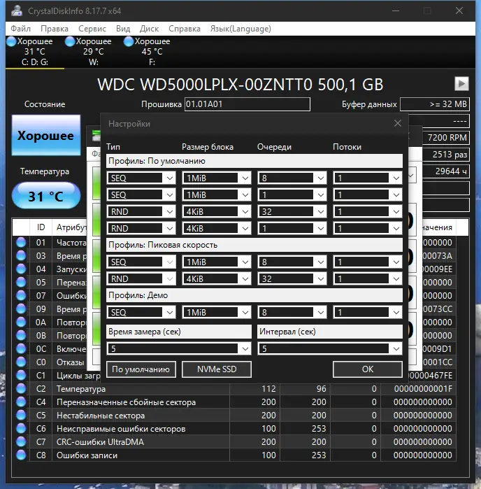 - Предупреждение о возможных проблемах с дисками
