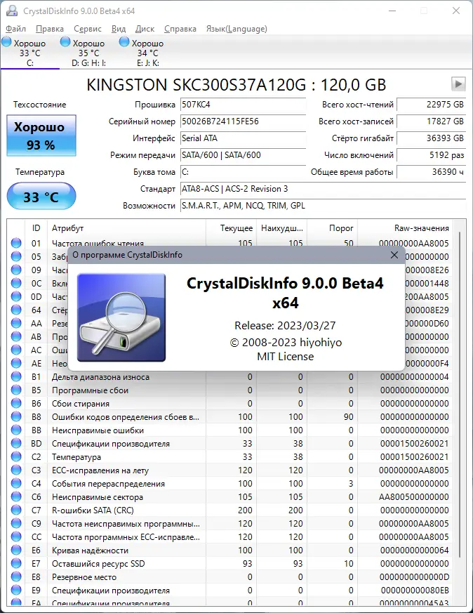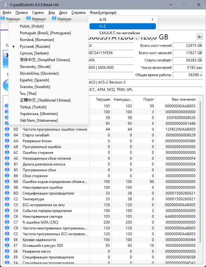 Данная утилита предназначена для детального анализа и мониторинга жестких дисков и SSD, установленных в компьютере. Она отображает информацию о прошивке, серийном номере, интерфейсе, времени работы и других технических характеристиках. Кроме того, программа выводит параметры системы самодиагностики S.M.A.R.T., такие как количество ошибок чтения, производительность, состояние секторов и циклы включения-выключения. Поддержка локализаций и сменных тем делает использование более комфортным. В динамическом режиме отслеживаются изменения параметров любой подключенной системы хранения, а также есть возможность отображать их на графиках. Для внешних устройств с интерфейсами USB и IEEE 1394 предусмотрена отдельная поддержка, что расширяет функциональность программы.