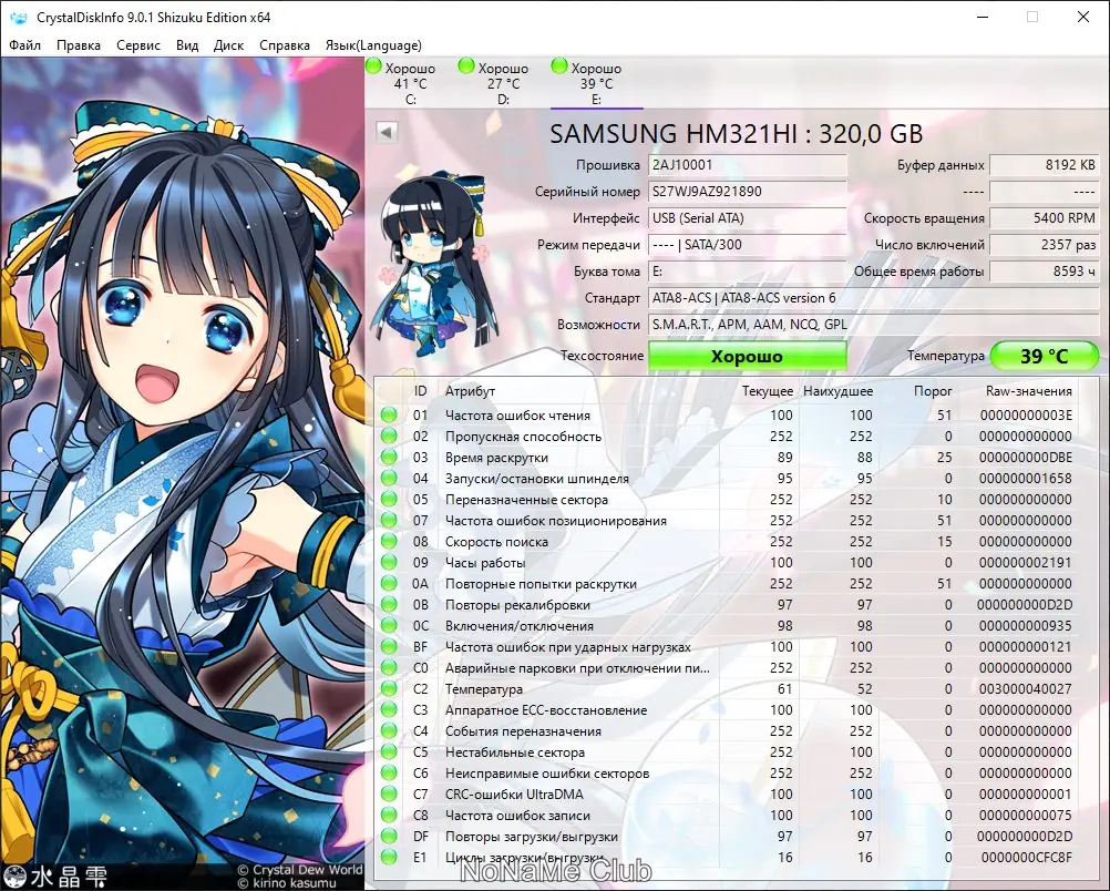 Классическая утилита, поддерживающая технологию S.M.A.R.T., предоставляет подробную информацию о состоянии жестких дисков и SSD, установленных в компьютере. Она отображает параметры прошивки, серийного номера, стандарта и интерфейса, а также общее время работы устройства. CrystalDiskInfo осуществляет мониторинг атрибутов системы самодиагностики, таких как ошибки чтения, производительность, циклы включения-выключения, ошибки секторов и многое другое. Программа поддерживает локализации, сменные темы и позволяет динамически отслеживать изменения параметров для всех накопителей в системе, отображая их на графике. Кроме того, реализована возможность управления AAM и APM для внешних устройств и поддержка внешних накопителей через интерфейсы USB и IEEE 1394.