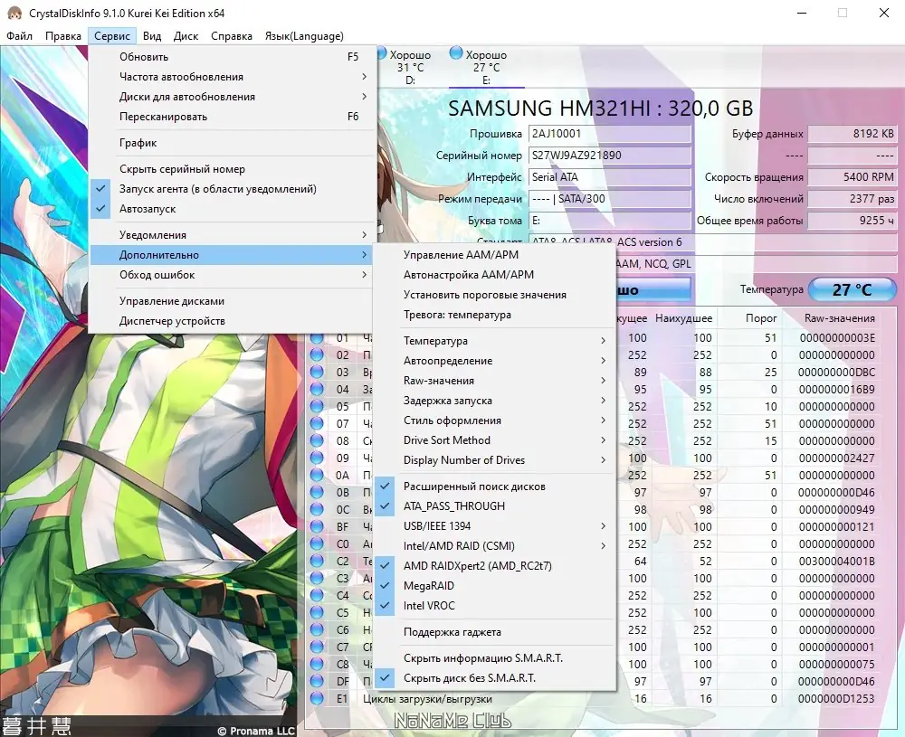 - Мониторинг здоровья накопителя и температуры в реальном времени.