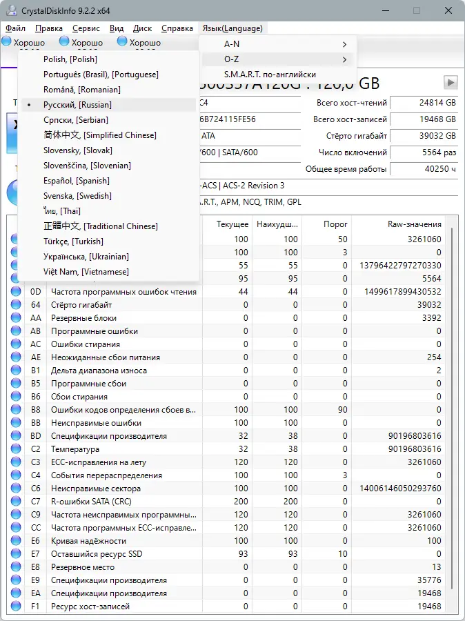 CrystalDiskInfo — это мощная программа для мониторинга состояния жестких дисков и SSD, поддерживающая технологию S.M.A.R.T. и предназначенная для оценки «здоровья» накопителей, а также отображения подробной информации о них.