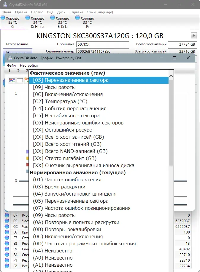 - Настроить нужные параметры отображения и начать мониторинг состояния дисков.