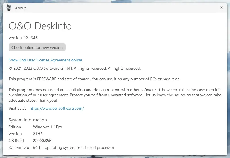 O&O DeskInfo — это легкая и удобная программа, которая выводит всю необходимую информацию о вашем компьютере прямо на рабочий стол. Она позволяет отслеживать состояние системы в реальном времени и настраивать отображение данных по вашему усмотрению.