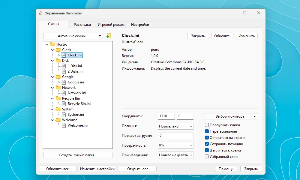 - Некоторые скины могут снижать производительность системы при неправильной настройке