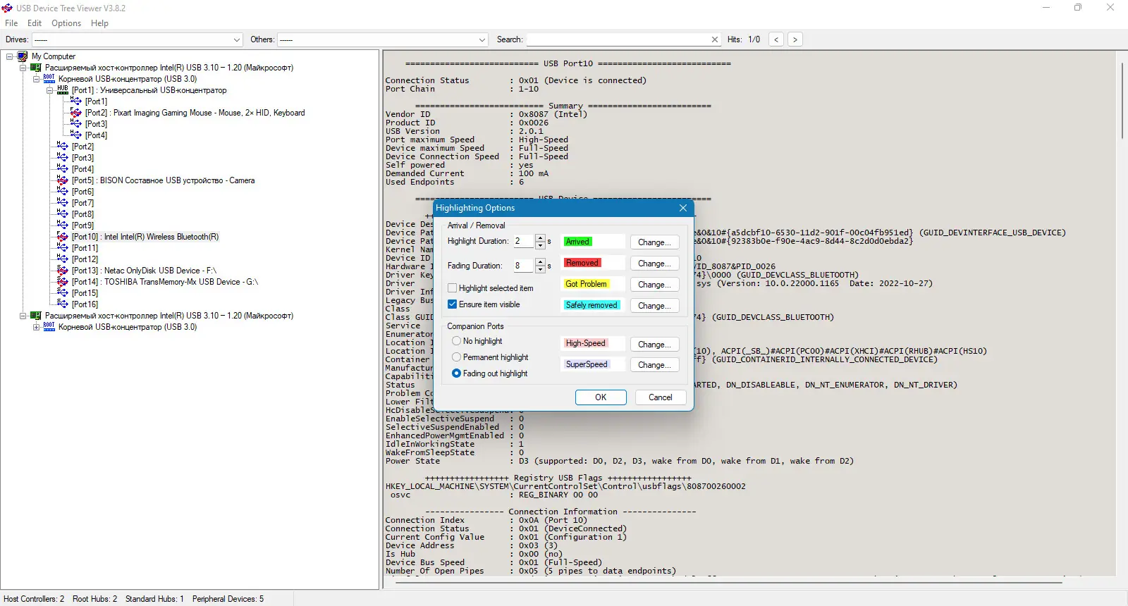 USB Device Tree Viewer — это легкая и бесплатная утилита для наглядного отображения устройств USB, их хабов и портов. Программа представляет древовидную структуру устройств, объединяет информацию из системы и предоставляет расширенные сведения о подключенных устройствах, включая буквы дисков и COM-порты. Имеется возможность безопасного извлечения устройств и быстрого поиска по дереву, что значительно облегчает диагностику и управление подключенными устройствами.