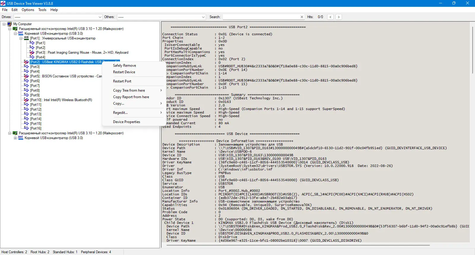 UsbTreeView — современный инструмент, позволяющий получать более полную информацию о USB-устройствах и управлять ими по сравнению со стандартными средствами Windows. Он прост в использовании и обладает множеством полезных функций для диагностики и обслуживания оборудования.
