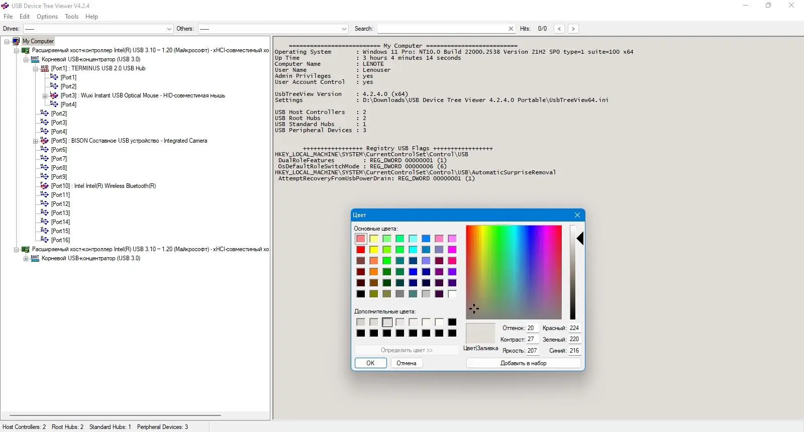 - Расширенное древовидное отображение USB-устройств и хабов.