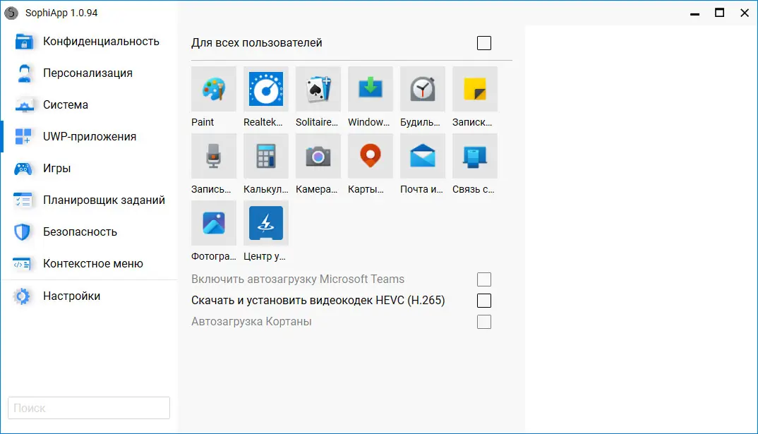 - Удаление UWP-приложений с отображением локализированных имен пакетов
