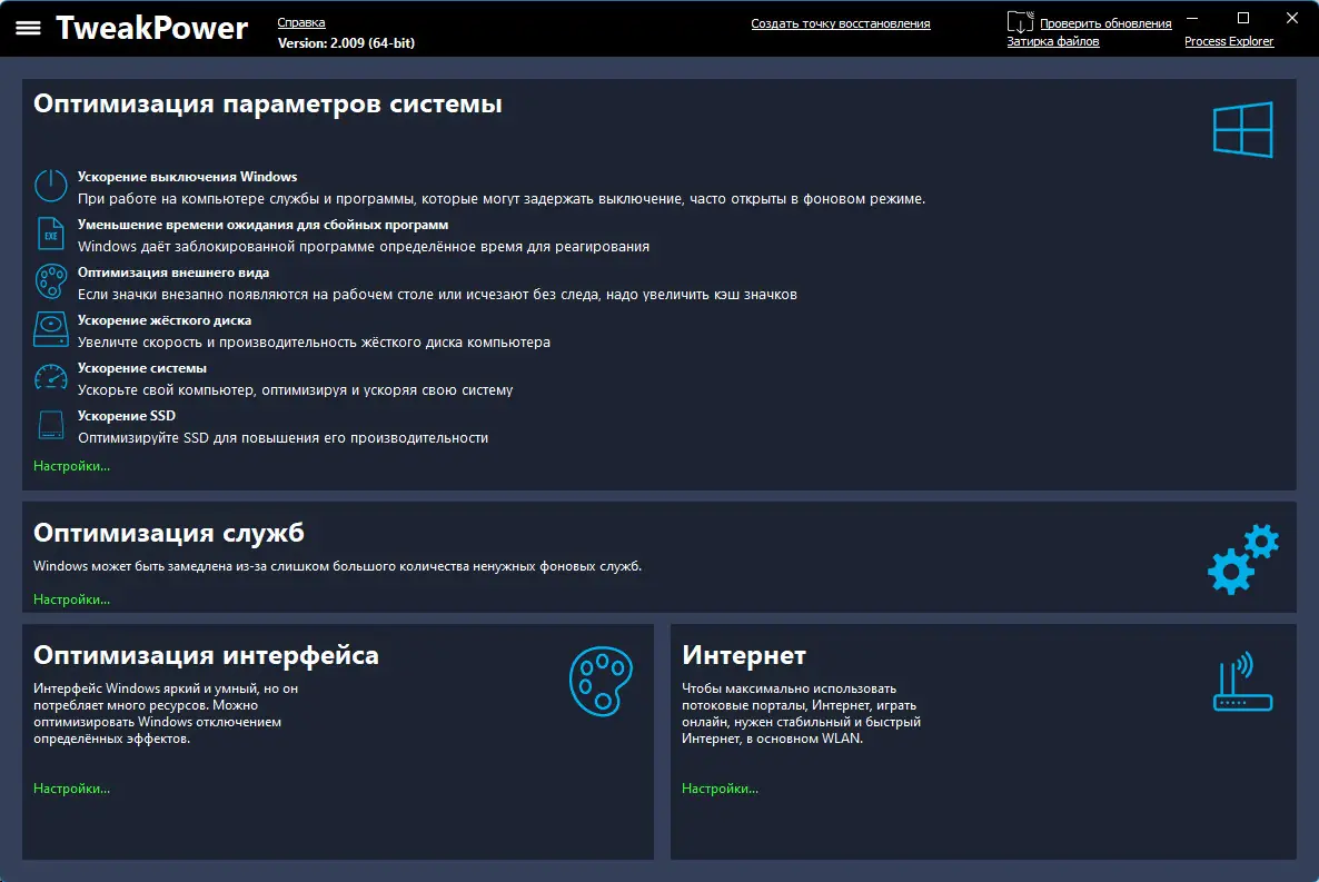 Современная программа для комплексной оптимизации и настройки компьютера, основанная на удобной графической оболочке. Предлагает широкий спектр инструментов для повышения производительности, повышения безопасности и удобства использования системы Windows.
