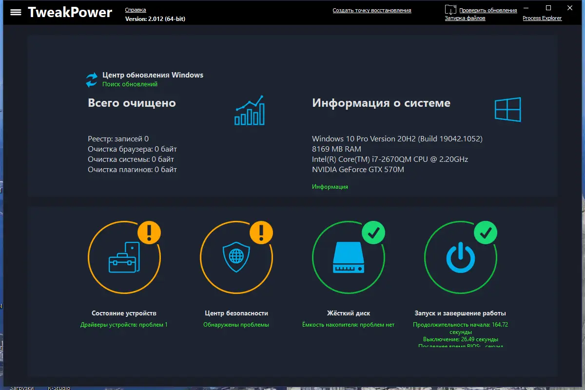 Инструмент представляет собой единый комплексный пакет, позволяющий улучшить производительность компьютера, повысить безопасность и удобно управлять системными настройками. Основная функция TweakPower — это диагностика ошибок, очистка и оптимизация системы, а также настройка параметров конфиденциальности. Благодаря различным режимам работы пользователь может легко адаптировать программу под свои задачи: от быстрой очистки до глубокого анализа системы и безопасности.