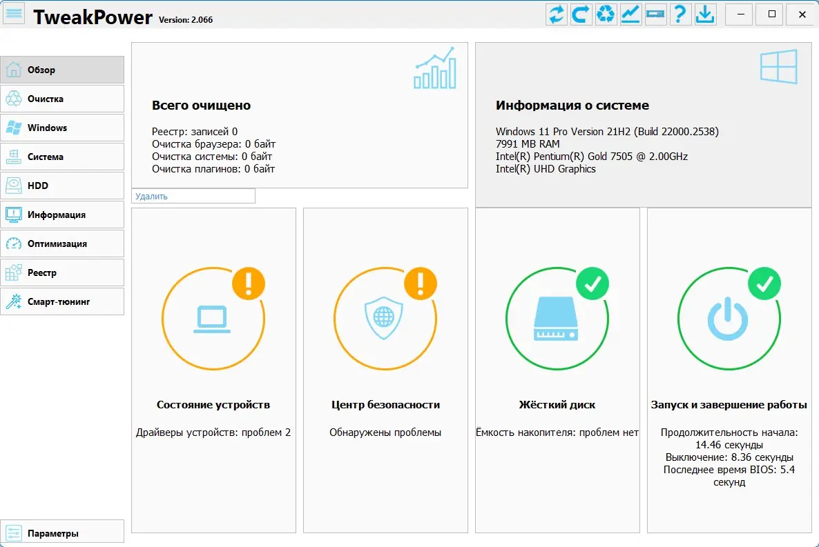 Полезное решение для оптимизации и настройки компьютера под управлением Windows, объединяющее множество инструментов для повышения производительности и безопасности системы.
