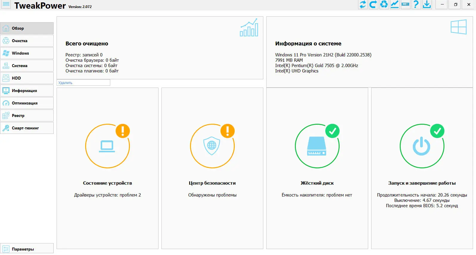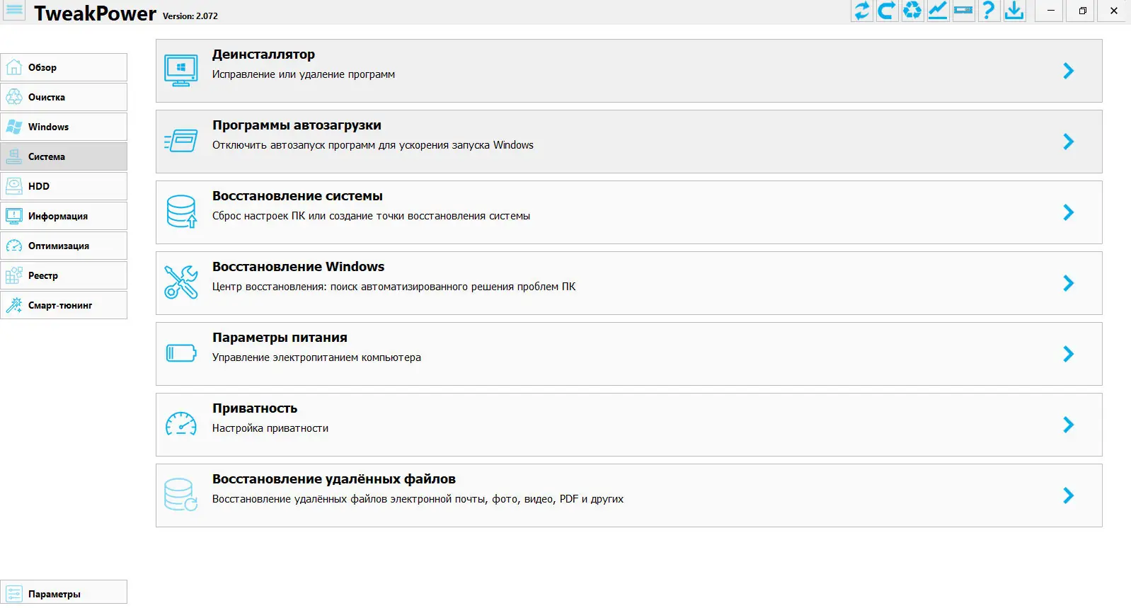 Плагин TweakPower — это мощный инструмент для комплексной оптимизации и настройки операционной системы Windows, объединяющий широкий спектр функций для повышения производительности и безопасности компьютера.