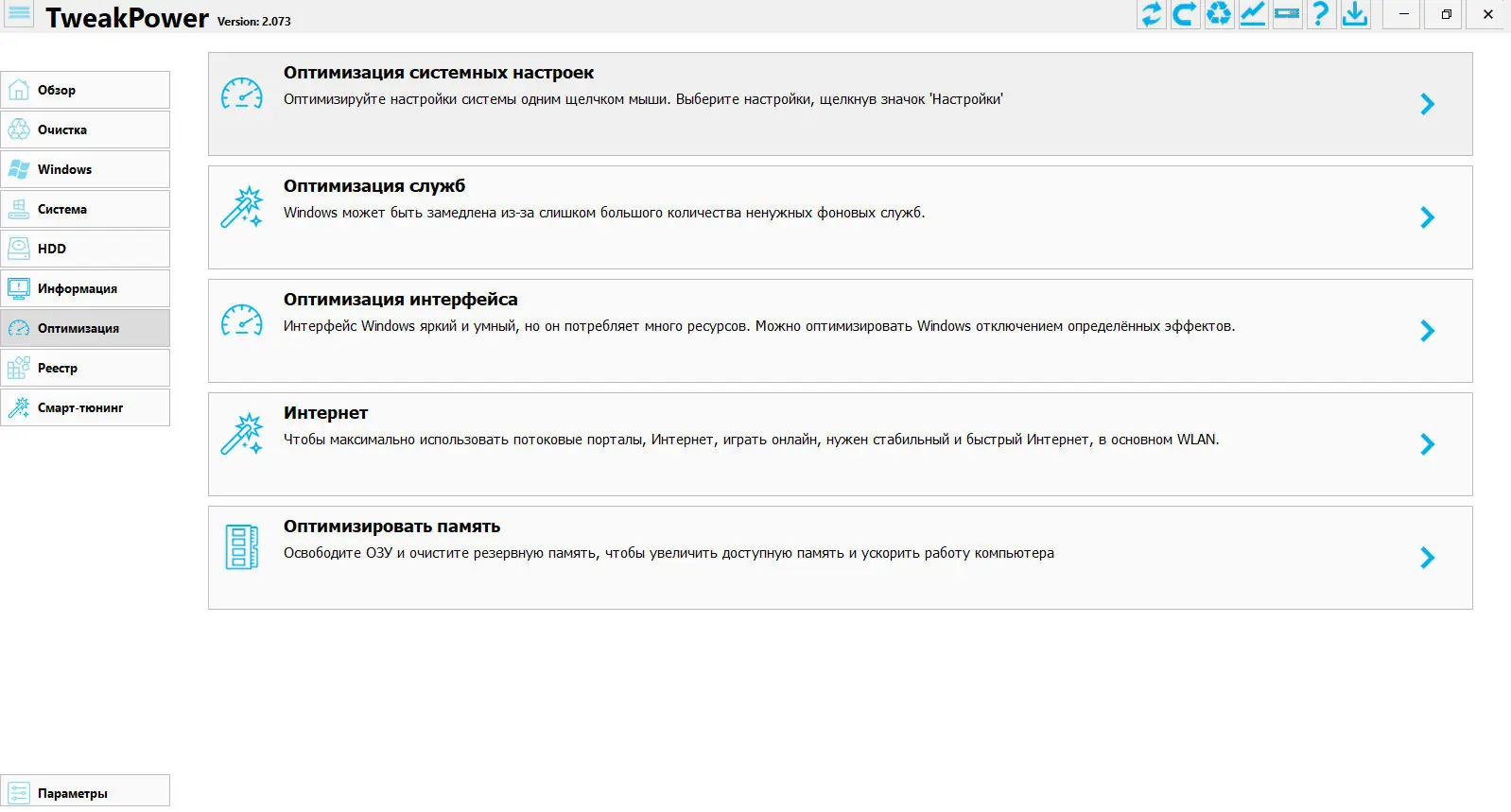 Программа представляет собой единый графический интерфейс, сочетающий в себе широкий набор инструментов для эффективной диагностики, очистки и настройки операционной системы Windows. Она позволяет выявлять и исправлять ошибки, освобождать место на жестком диске, управлять автозагрузкой и настроить параметры безопасности. Благодаря нескольким режимам работы, можно подобрать оптимальные настройки для различных задач, будь то повышение скорости работы, защита данных или настройка интерфейса. TweakPower также предоставляет функции создания точек восстановления и резервного копирования, что обеспечивает дополнительную надежность при выполнении системных изменений.