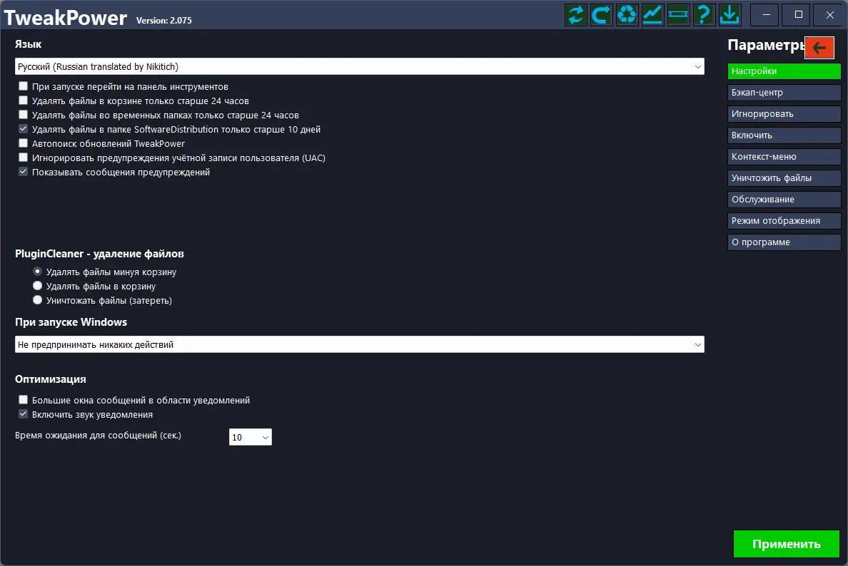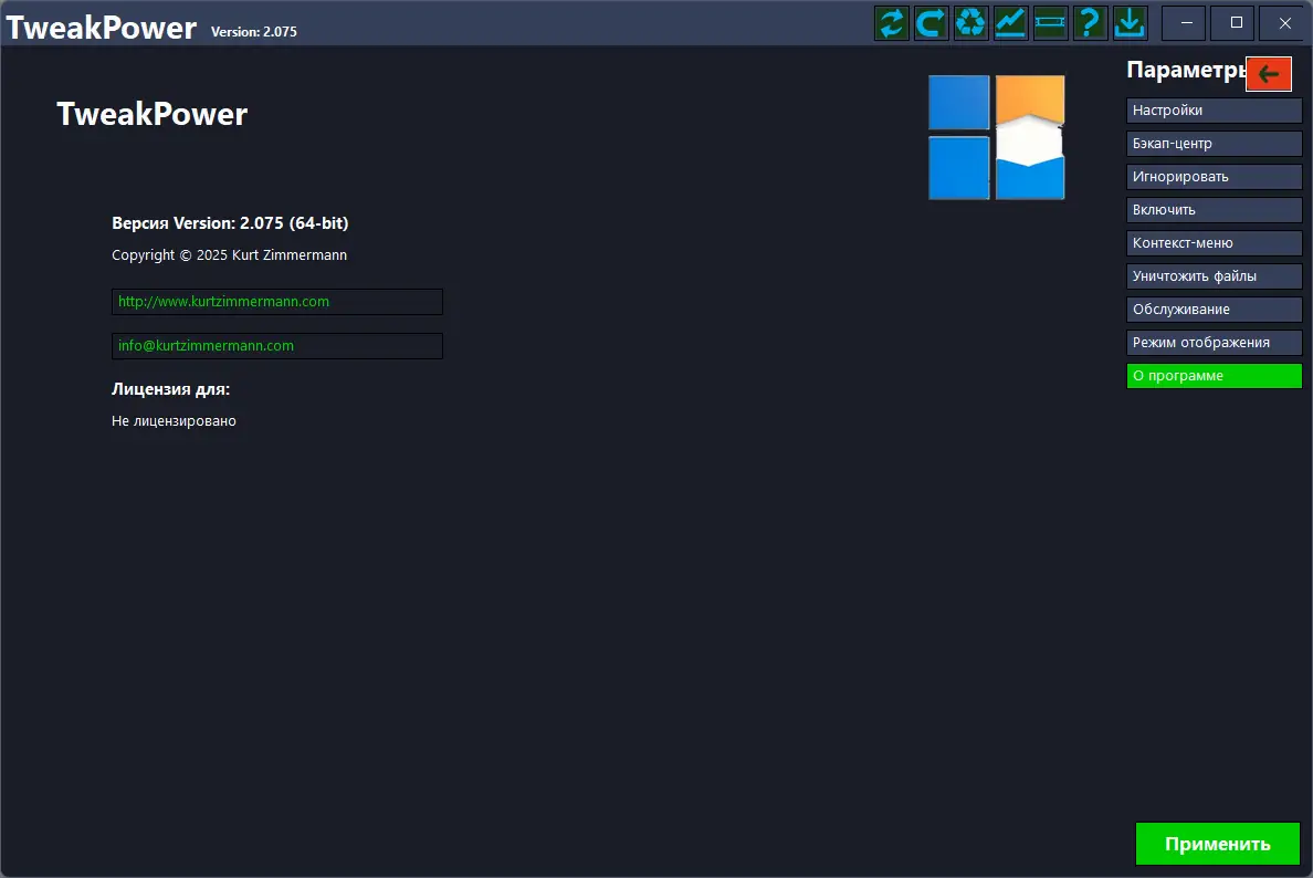 Универсальный инструмент для настройки, оптимизации и очистки системы на базе Windows.
