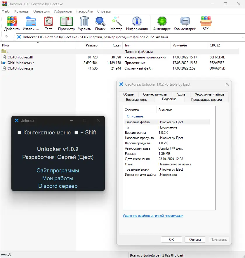 Всем привет. На последних версиях Windows 11 частично перестал работать Unlocker, в связи с этим решил написать свой вариант утилиты, основанный на последней версии IObitUnlocker 1.3.0.11. Эта программа позволяет легко удалить практически любой файл или папку, даже если они заблокированы системой. Работа программы протестирована на последних версиях Windows 11 и 10. Особенностью является возможность массового удаления нескольких элементов за один раз. Важно помнить, что удаление файлов без предупреждений является безвозвратным, поэтому следует проявлять осторожность при использовании.