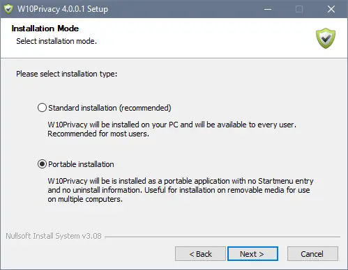 - Запустите инсталляционный файл и выберите режим установки — стандартный или портативный.