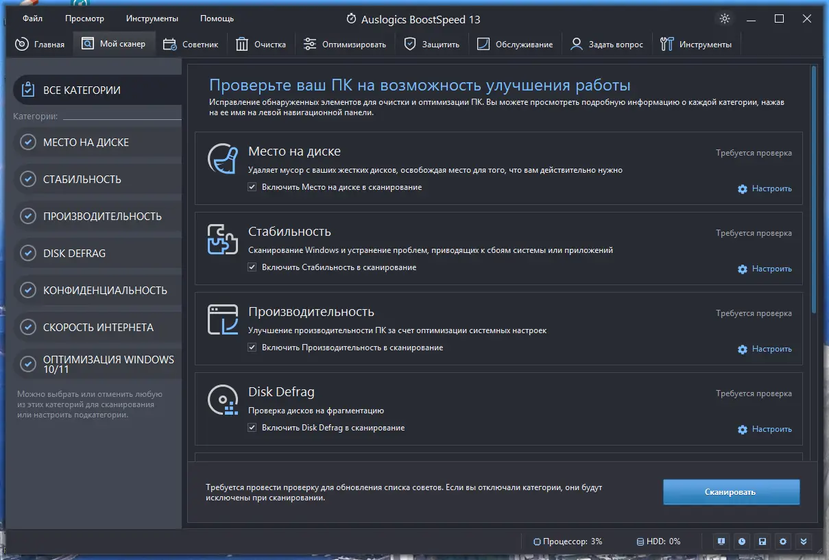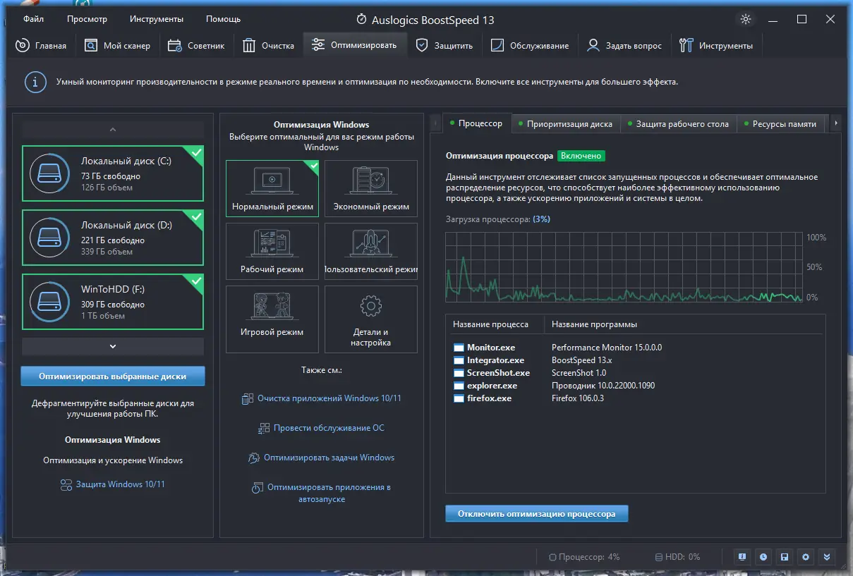 Это мощное приложение для настройки и оптимизации ПК, позволяющее повысить его производительность за кратчайшие сроки и обеспечить максимально надежную работу системы.