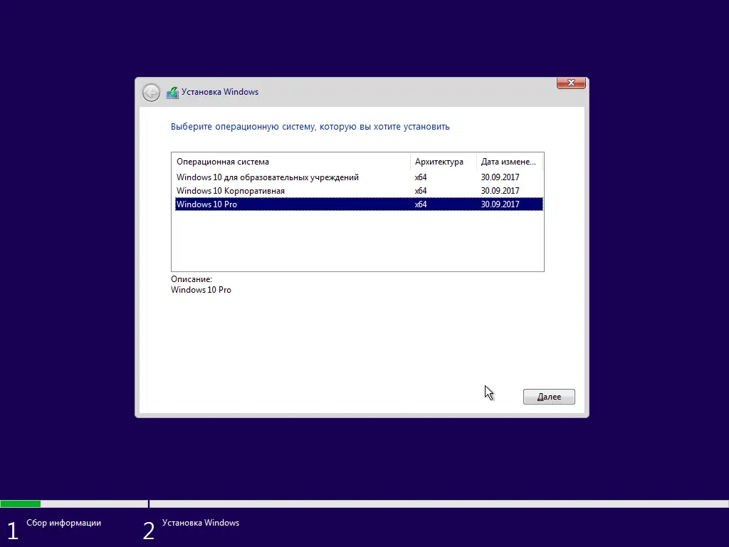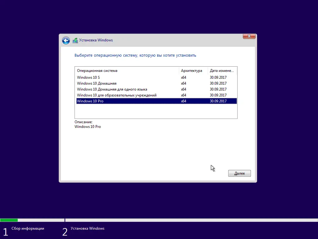 - Следуйте инструкциям мастера установки, выбрав предпочтительные параметры и редакцию системы.