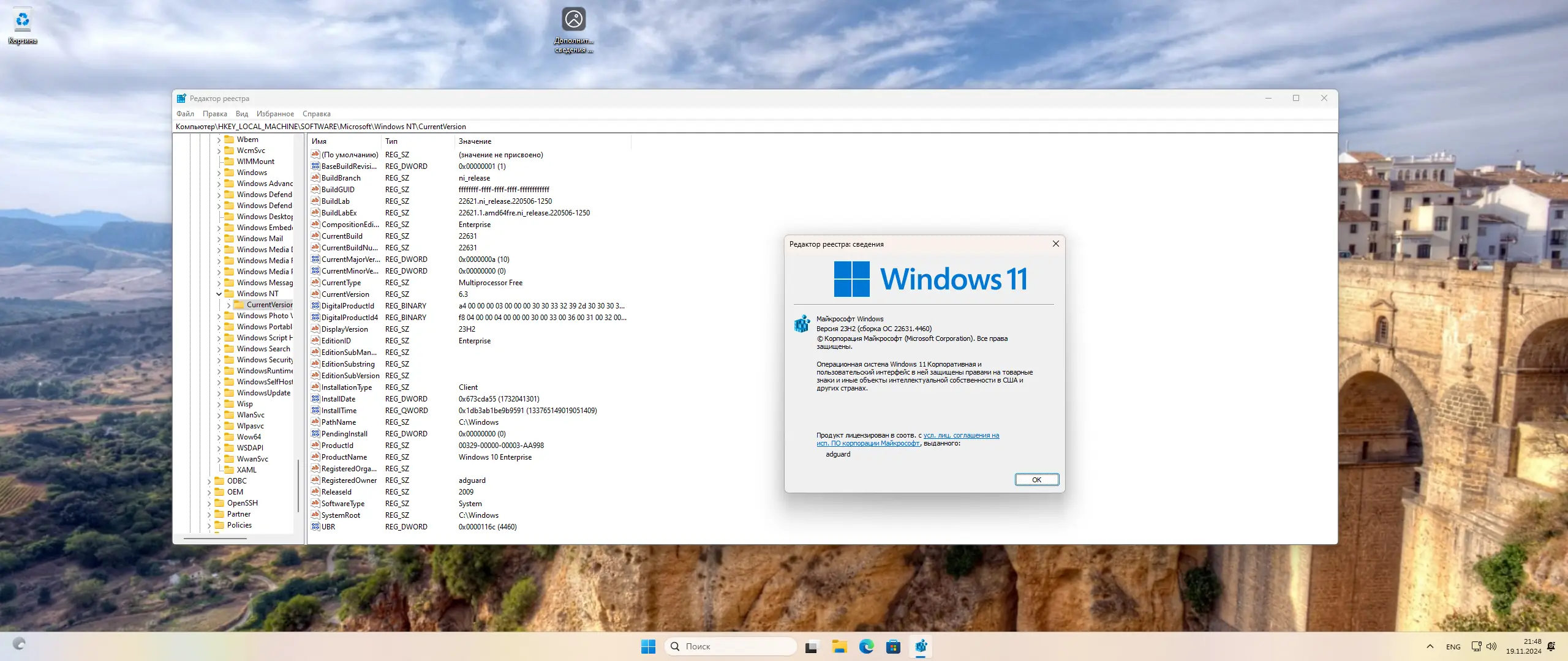 Microsoft Windows 11 — это современная серия операционных систем, разработанных корпорацией Майкрософт. В рамках концепции «операционная система как служба» система получает регулярные обновления с новыми функциями и улучшениями. Для корпоративных клиентов предусмотрены варианты поддержки с более медленными темпами обновлений или долгосрочной поддержкой, которая включает только критические исправления безопасности на протяжении пяти лет. Последнее крупное обновление — версия 23H2, выпущенная 31 октября 2023 года, основана на оригинальных образах с сборкой 22631.4460 и включает в себя новые функции и улучшения в пользовательском интерфейсе и безопасности.