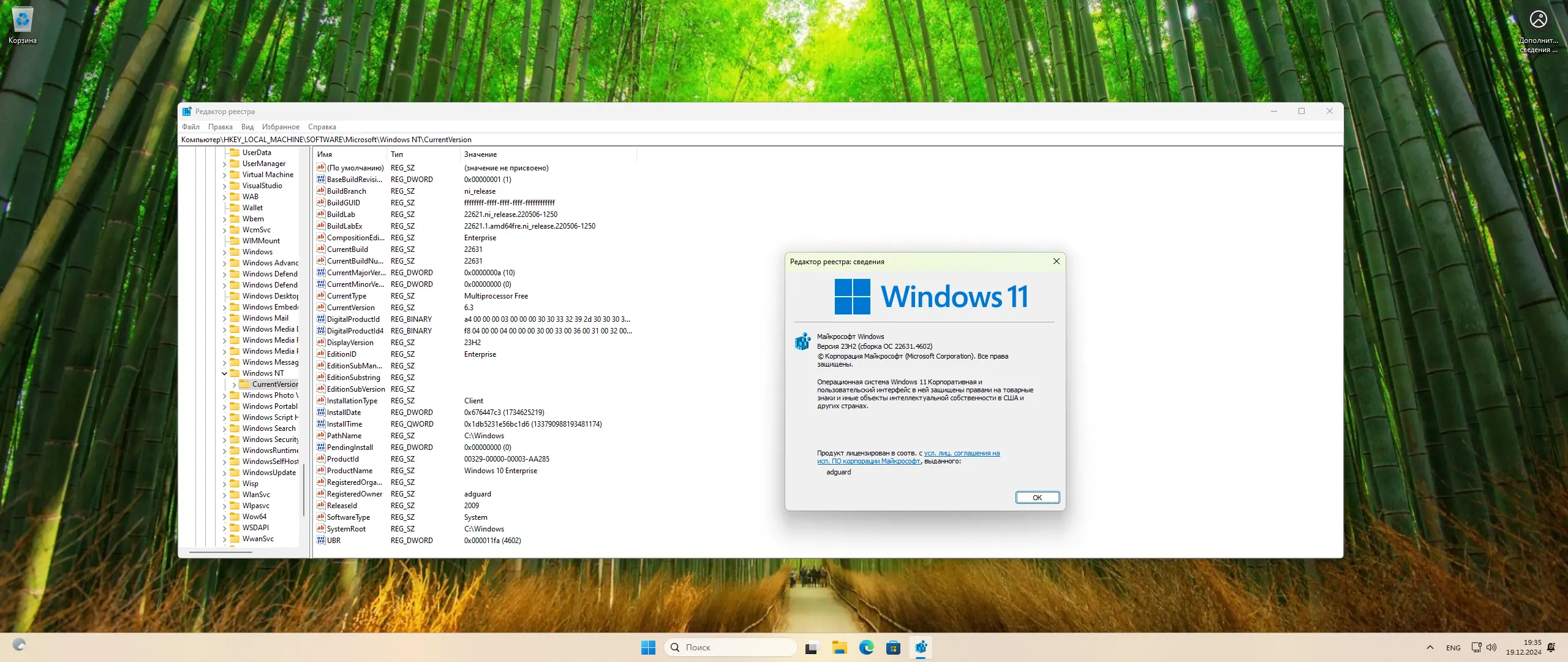 Windows 11 — это современная серия операционных систем, разработанных корпорацией Майкрософт. Компания описала данную платформу как «операционную систему как службу», которая постоянно получает обновления с новыми функциями и улучшениями. В зависимости от потребностей, корпоративные пользователи могут получать некритические обновления медленнее или выбрать долгосрочные этапы поддержки с ограниченным набором обновлений, в основном только исправлениями безопасности. Последнее крупное обновление — версия 23H2, выпущенная 31 октября 2023 года, — добавляет новые возможности и повышает стабильность системы. Оригинальный образ системы построен на версии Windows 11 Build 22631.4602, что обеспечивает современный уровень производительности и безопасности.