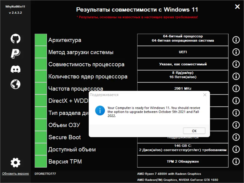 Программа WhyNotWin11 — это утилита, предназначенная для определения совместимости вашего компьютера с операционной системой Windows 11. Она помогает пользователям быстро и точно проверить встроенные аппаратные компоненты и системные параметры без необходимости сложных настроек или обращения к специалистам.
