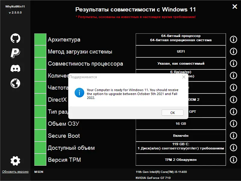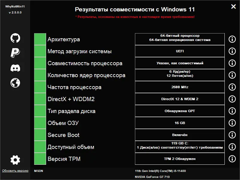 Программа WhyNotWin11 — утилита, которая помогает определить, совместим ли ваш компьютер и его аппаратное обеспечение с операционной системой Windows 11. Она анализирует встроенные компоненты и сообщает о возможных проблемах, препятствующих обновлению.