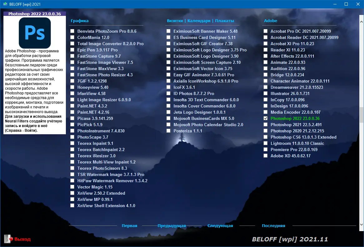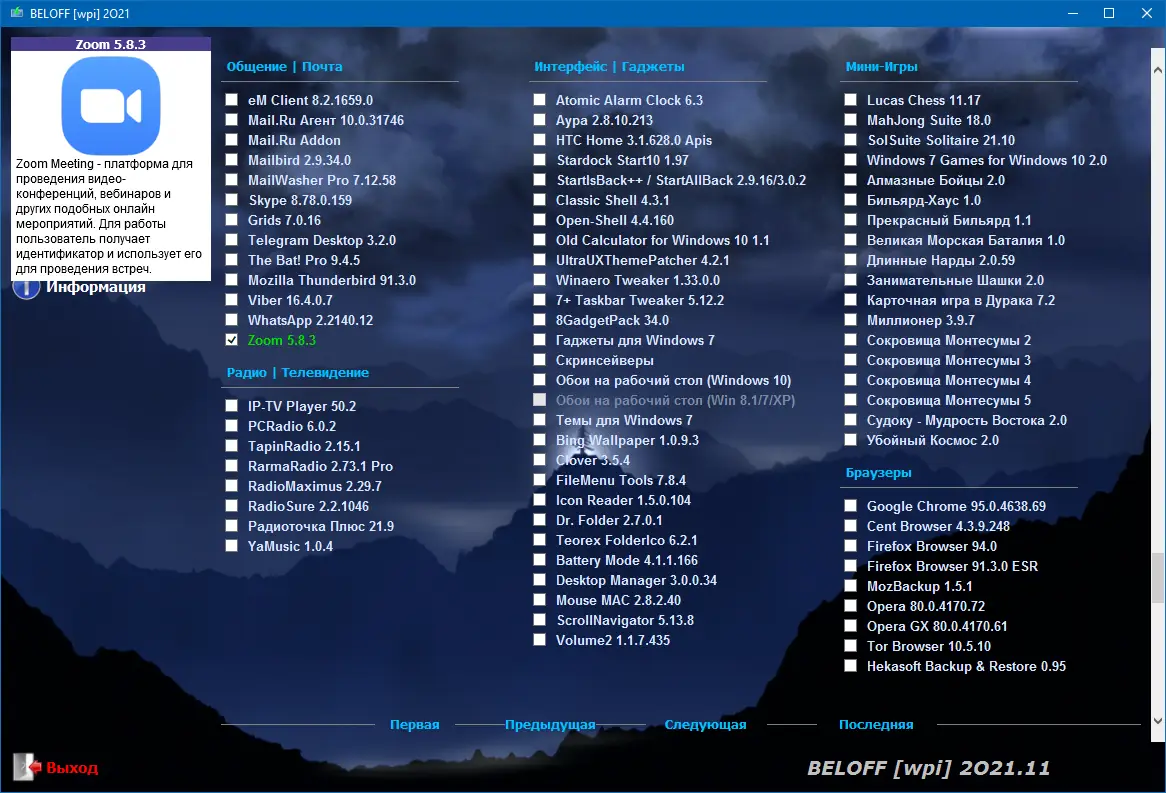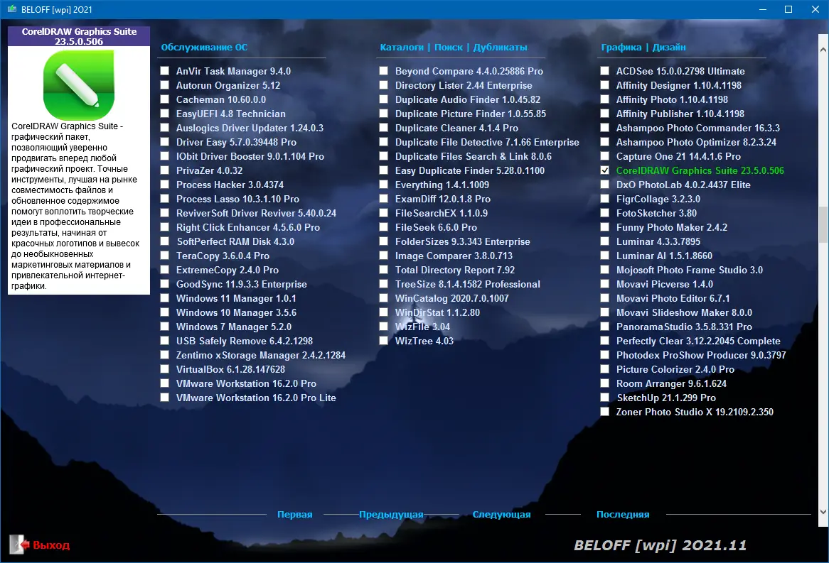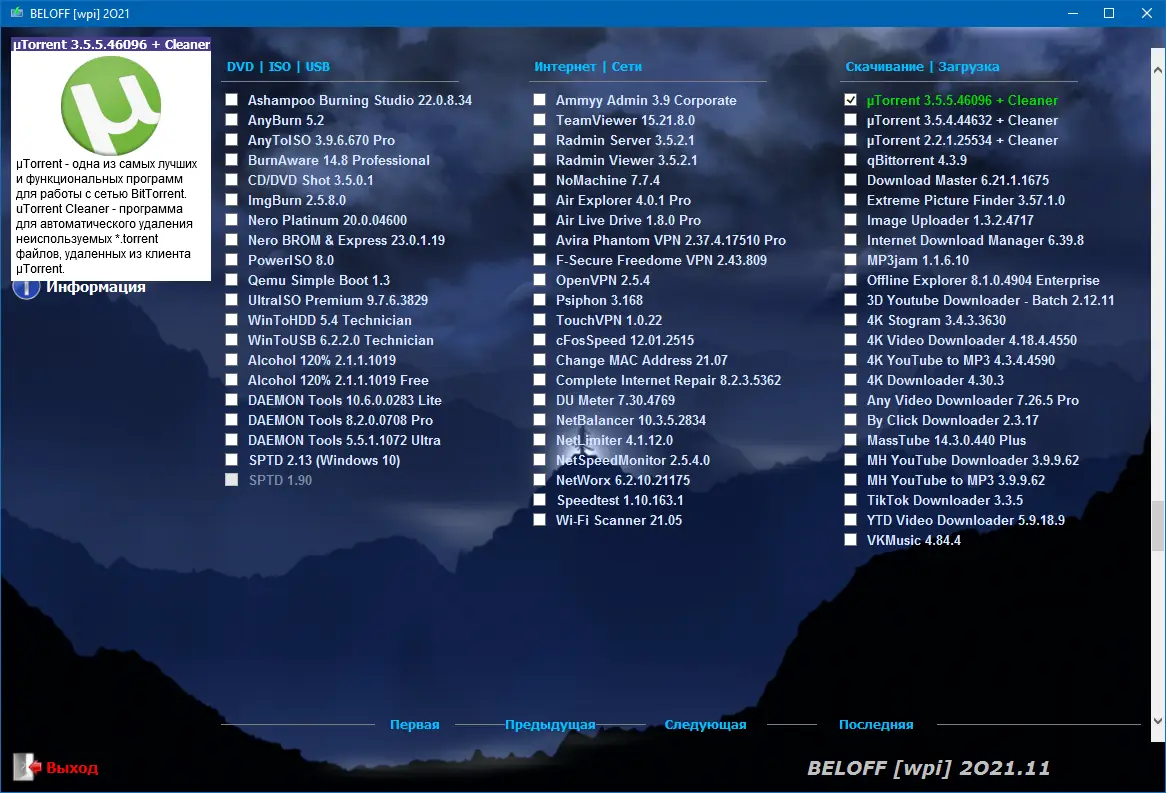 BELOFF — универсальный сборник лучших программ для операционных систем Windows 7, 8/8.1, 10 и 11 в версиях x32 и x64 Bit. В этом сборнике собран широкий выбор программ, сгруппированный по категориям, с возможностью автоматической установки в систему. Также в комплекте присутствуют портативные версии и дополнительные инструменты, такие как WPI и MInstAll, позволяющие легко управлять программами и обновлять драйверы. В сборник интегрированы автоматические средства для установки драйверов с помощью Snappy Driver Installer и DriverPack Solution, что значительно ускоряет подготовку системы. Особое внимание уделено мультизагрузке — это обеспечивает одновременную работу нескольких сборников и инструментов для более удобного использования.