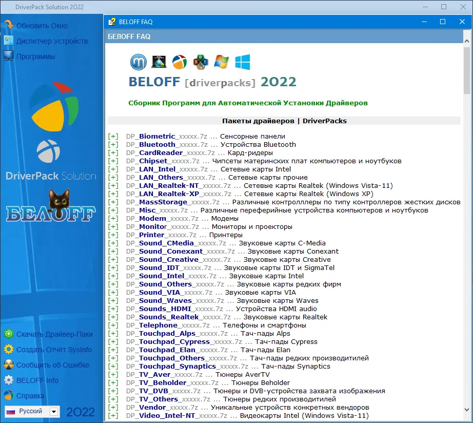 BELOFF — это сборник программ для автоматической установки драйверов в Windows x86 и x64, охватывающий версии 7, 8/8.1, 10 и 11. Предназначен для облегчения и автоматизации процесса обновления и установки драйверов, что позволяет значительно сократить время и повысить точность настройки системы. Этот комплект включает различные инструменты и драйвер-паки, что делает его универсальным решением для системных администраторов и продвинутых пользователей.